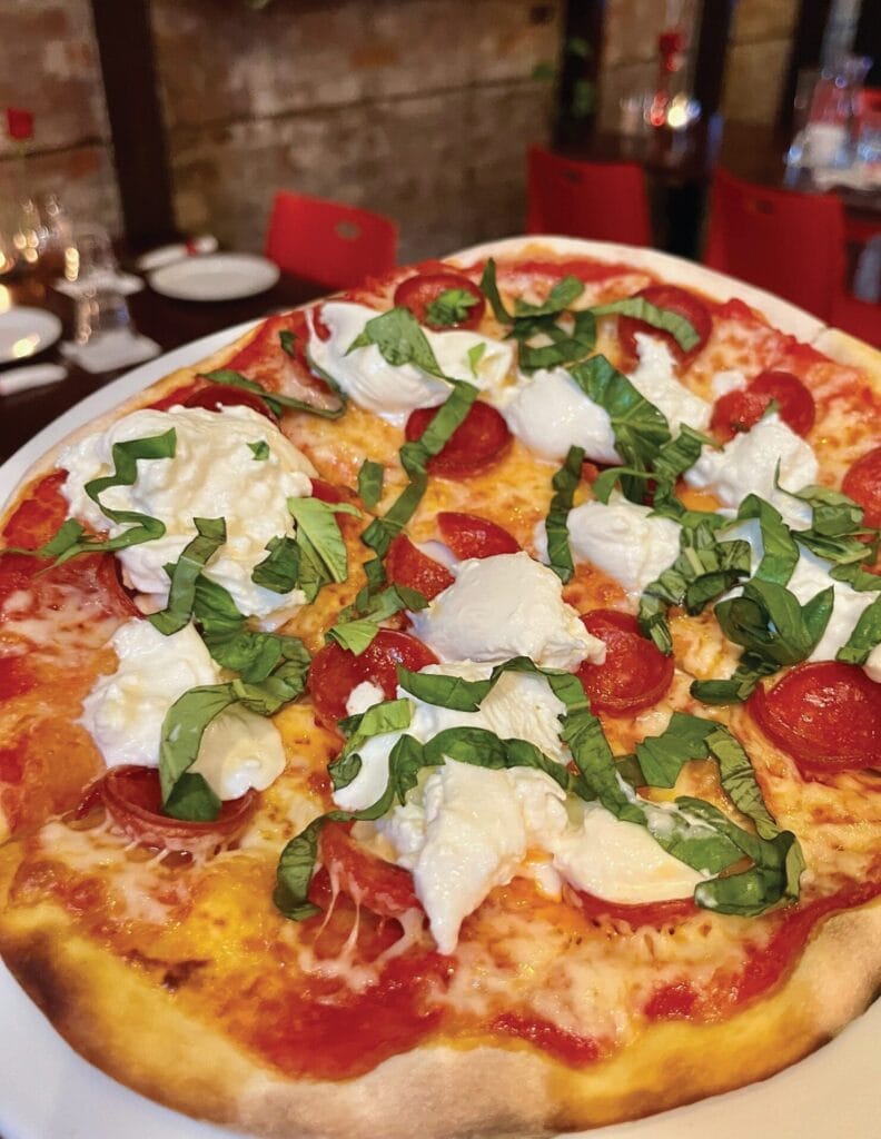 People return for their favorite dishes, like the pasta with a Bolognese sauce that needs over 10 hours to create. Wood-fired pizzas provide unique flavors. There are regular pasta and pizza specials to keep things interesting. Newer to the menu are luscious charcuterie boards with carefully selected imported salami, cheese and olives. There’s even one for vegans! Housemade flatbread comes right out of the oven and pairs with any of your choices.
