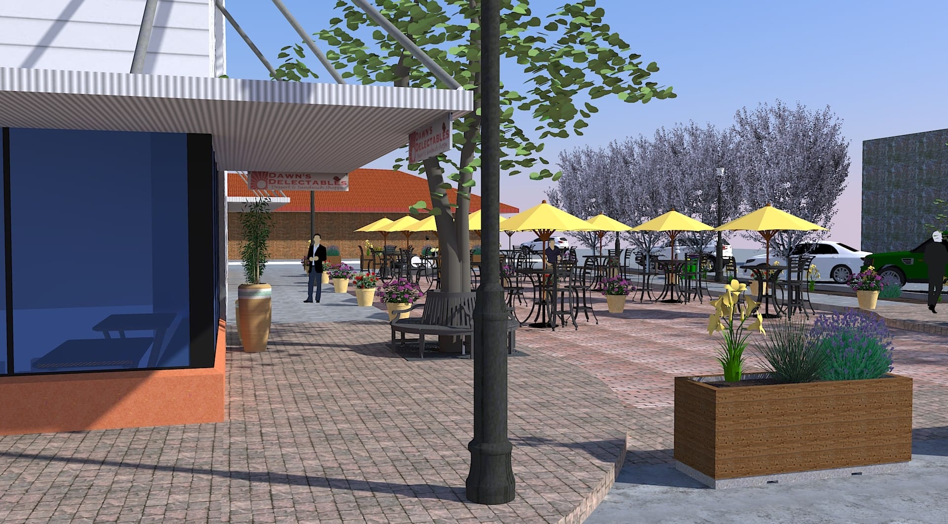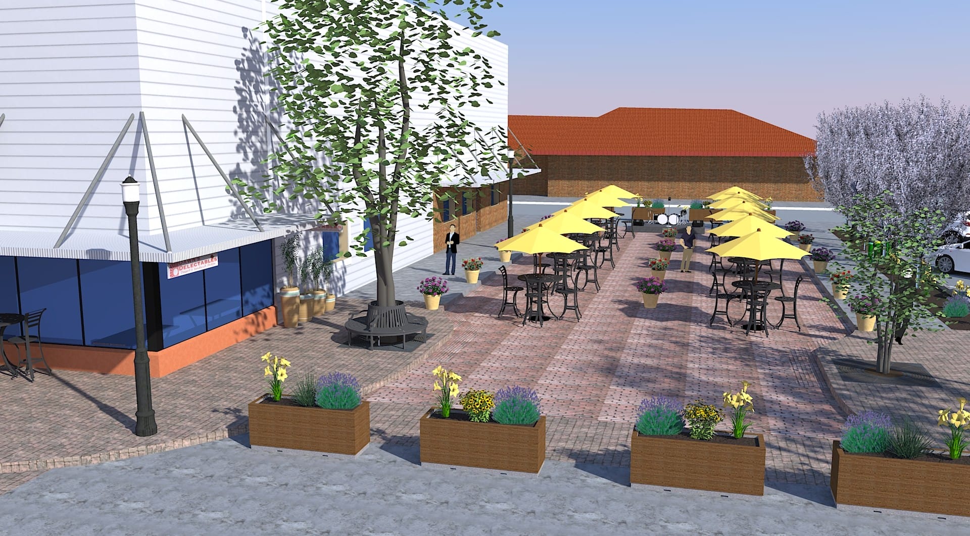 Centralia Downtown Association’s proposal includes transforming a one-block section of East Pine Street into a downtown plaza. The plaza will serve as a gathering place for locals, an outdoor seating area to support nearby restaurants, and as a welcoming point of entry for visitors exploring Centralia from the historic 1912 Train Depot. Plans for the plaza were partly spurred by community interest in reviving a downtown farmer’s market and place to hold local events–both potential future uses of the plaza area.