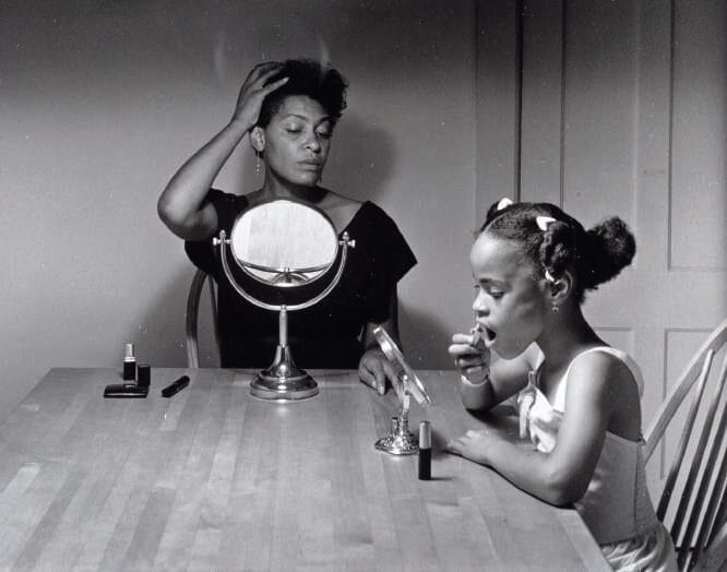 Top: Carrie Mae Weems, Untitled (Woman and Daughter with Make-up) from the Kitchen Table Series, 1990/2010
