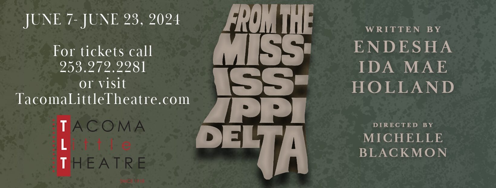 Tacoma Little Theatre closes out its 105th Season with a powerful and joyful celebration, From the Mississippi Delta, by Endesha Ida Mae Holland, Ph. D. This production is directed by Michelle Blackmon.